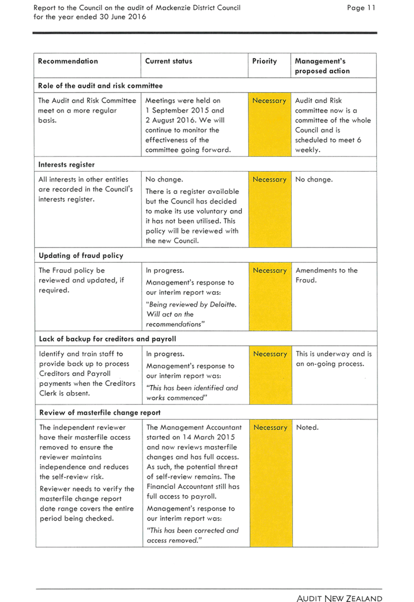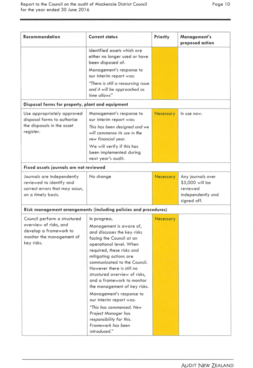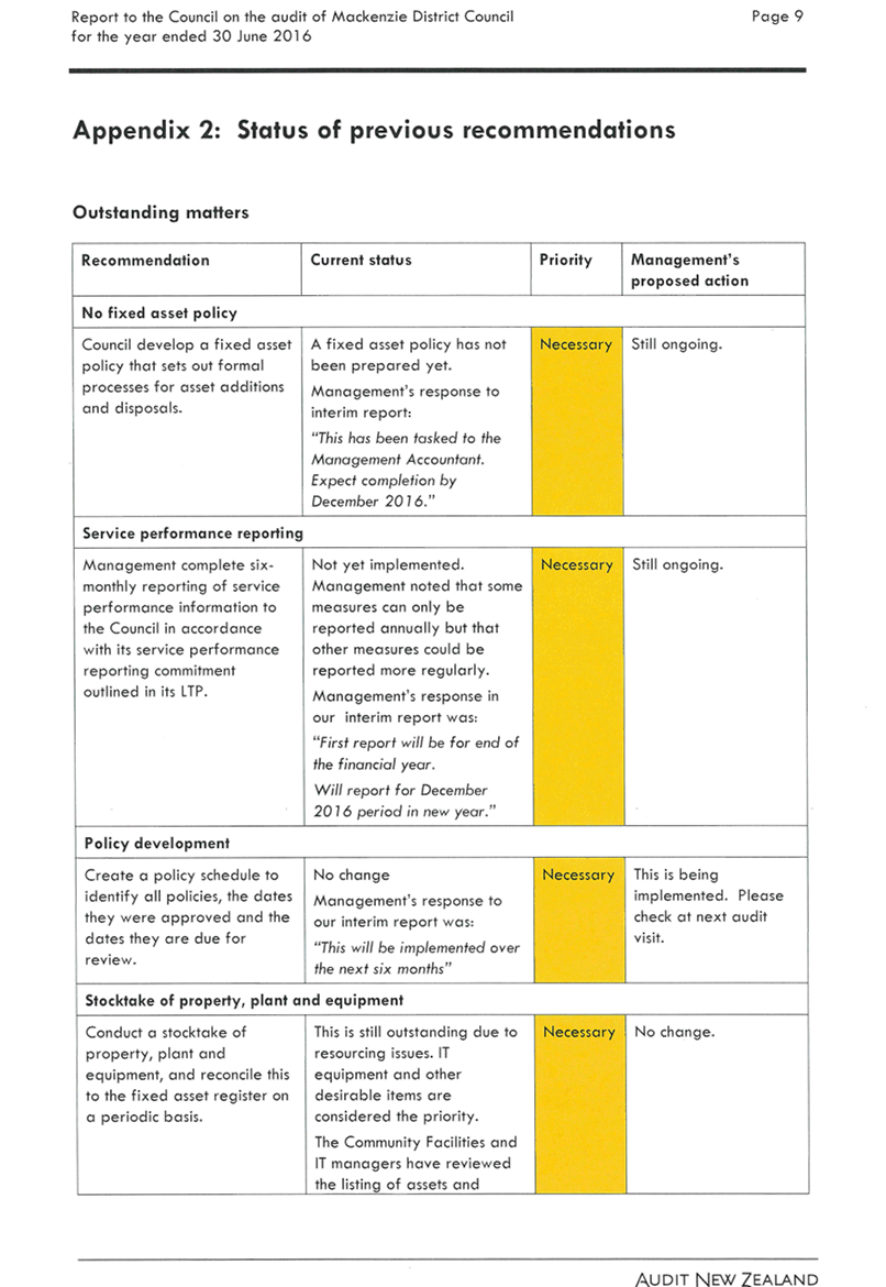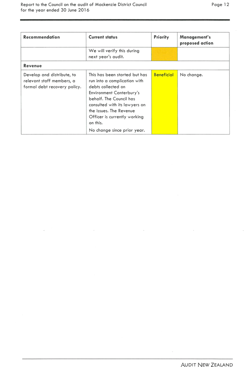 8.2 Report to Council on the Audit of Mackenzie District Council for the Year Ended 30 June 2016