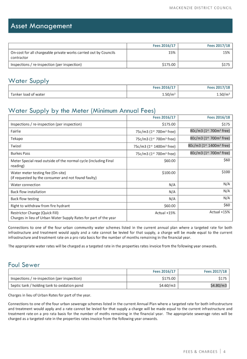 The first being on 13 March 2017 for the Burkes Pass Water Supply with a failed E.coli result of 2 MPN/100mL. Three consecutive tests were carried out with clear results for each. The possible reason for this failed result was due to heavy rain in the days preceding this sample being taken.