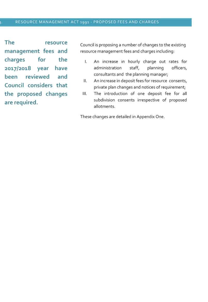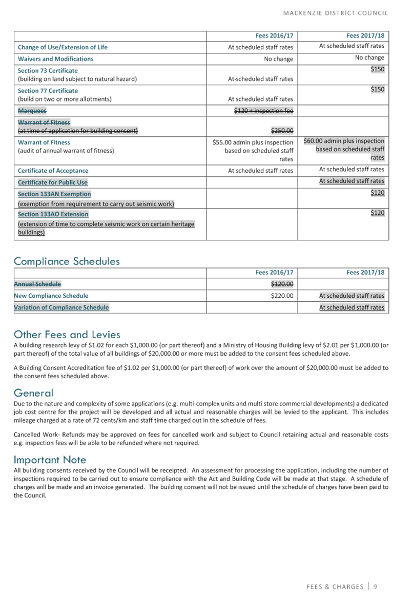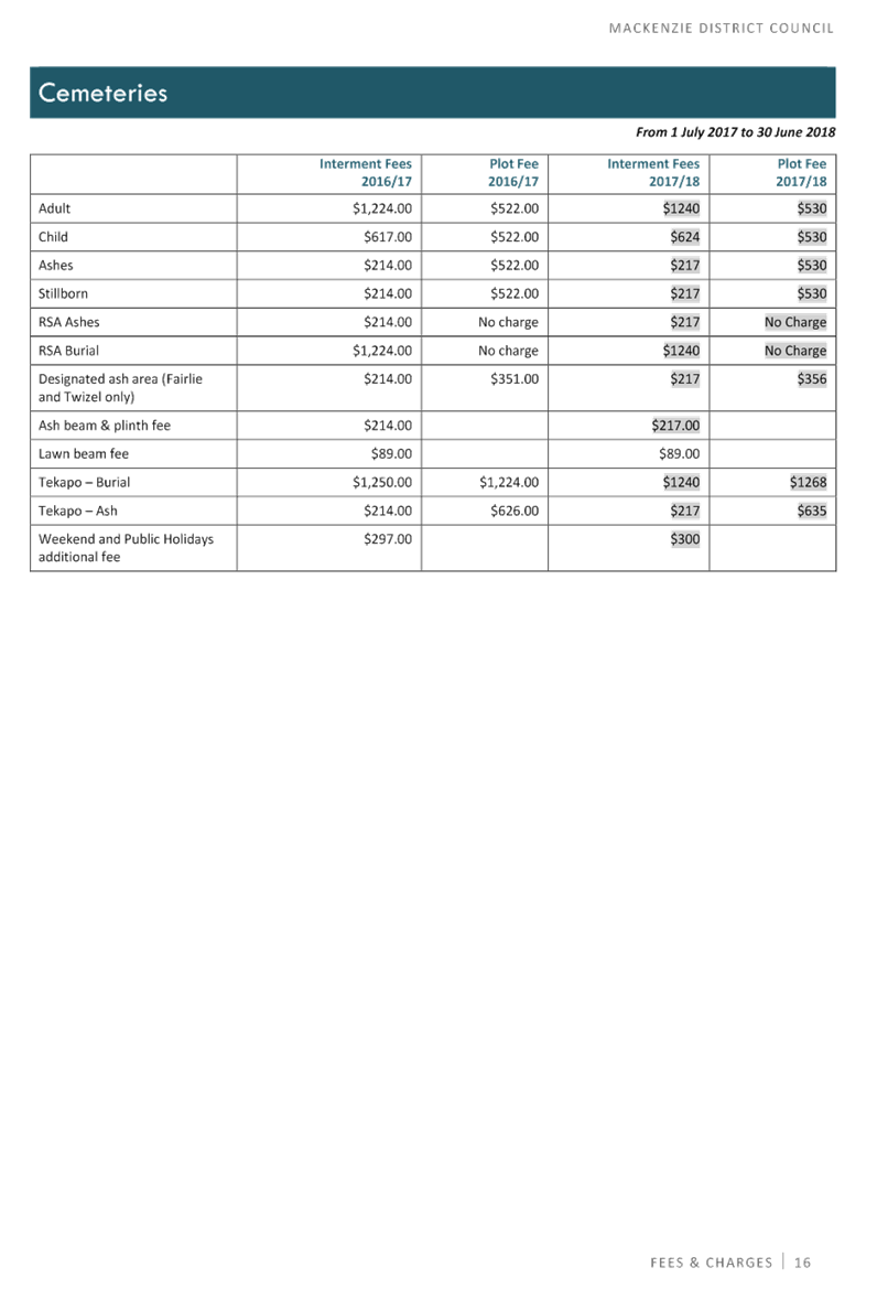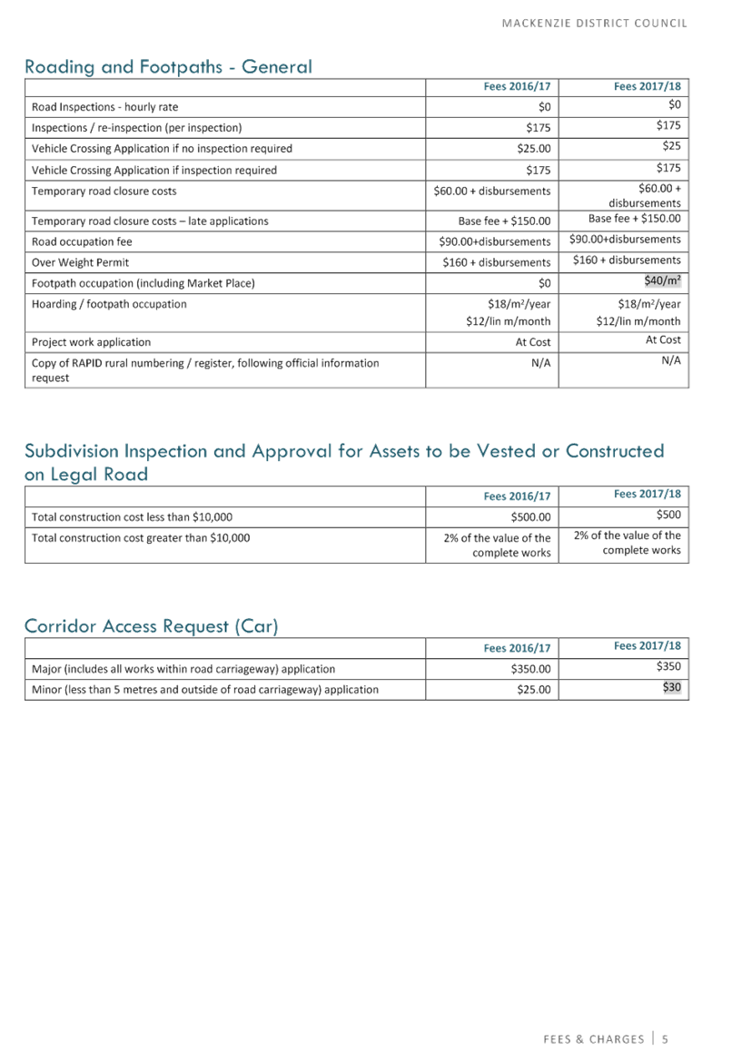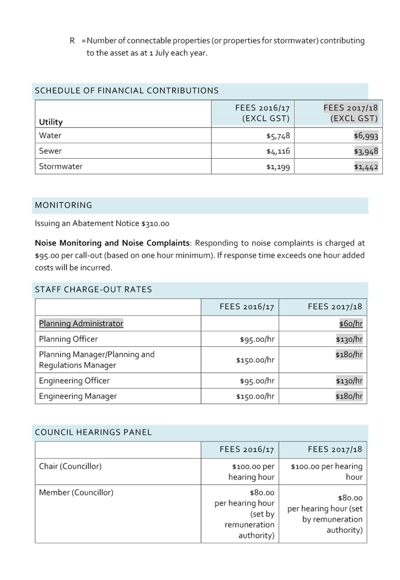 Resolution 2017/26 Moved: The Mayor Seconded: Cr Chris Clarke 2. That the Council note to the following variances from Year 3 of the Long Term Plan 2015-25 and agree to those items for inclusion in the Annual Plan 2017/18: (a) Depreciation Costs (b) Roading Business Unit Costs (c) Combined Urban Water –income, capex and opex costs, Twizel and Fairlie works (d) Combined Urban Sewer – Tekapo, Twizel and Fairlie works (e) Solid Waste costs (f) Planning area costs and income (g) Building area costs and income (h) Health Food Act regulation contract costs (i) Rural Fire organisational changes (j) Lake Tekapo and Lake Pukaki toilet upgrades (k) Mackenzie Community Centre maintenance costs (l) Freedom Camping investigations (m) Capitalisation of Tekapo projects costs (n) Increased activity in administration area (o) Staff training and consultancy support for Long Term Planning (p) Upgrades of IT systems (q) Increases in finance support area (r) Fairlie Office building renovations (s) Forestry interest savings (t) Forestry rental charges (u) Changes in Investment income Carried |