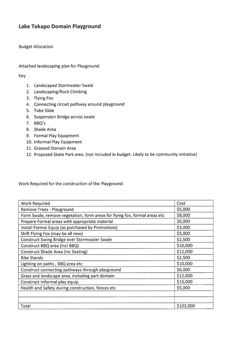 · 12 April – Attended Council Funding Needs Analysis Workshop. Attended Tekapo Property Group meeting.